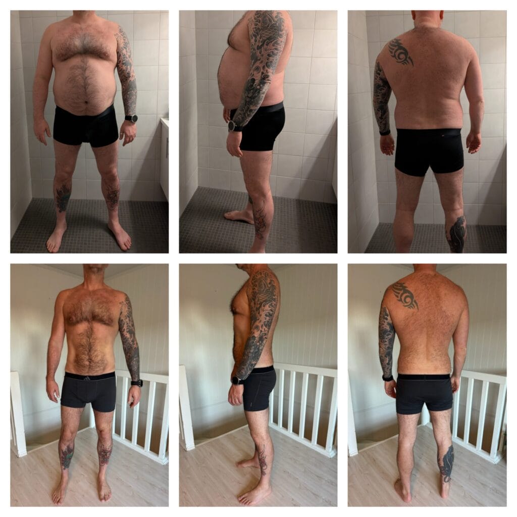 – Når Tor Egil har bestemt seg, da har han bestemt seg. Fra dag én har han fulgt matplanen, blitt helt RÅ på å få inn skritt og hatt progresjon på styrken selv med et vekttap på snart 30 kg. Tor Egil var allerede en sterk mann og har gått fra 45 kg i militærpress til 70 kg, fra 110 til 122,5 i markløft og fra 70 til 130 kg i hip thrust for å nevne noe samtidig som han har blitt en løper, forteller Martine.